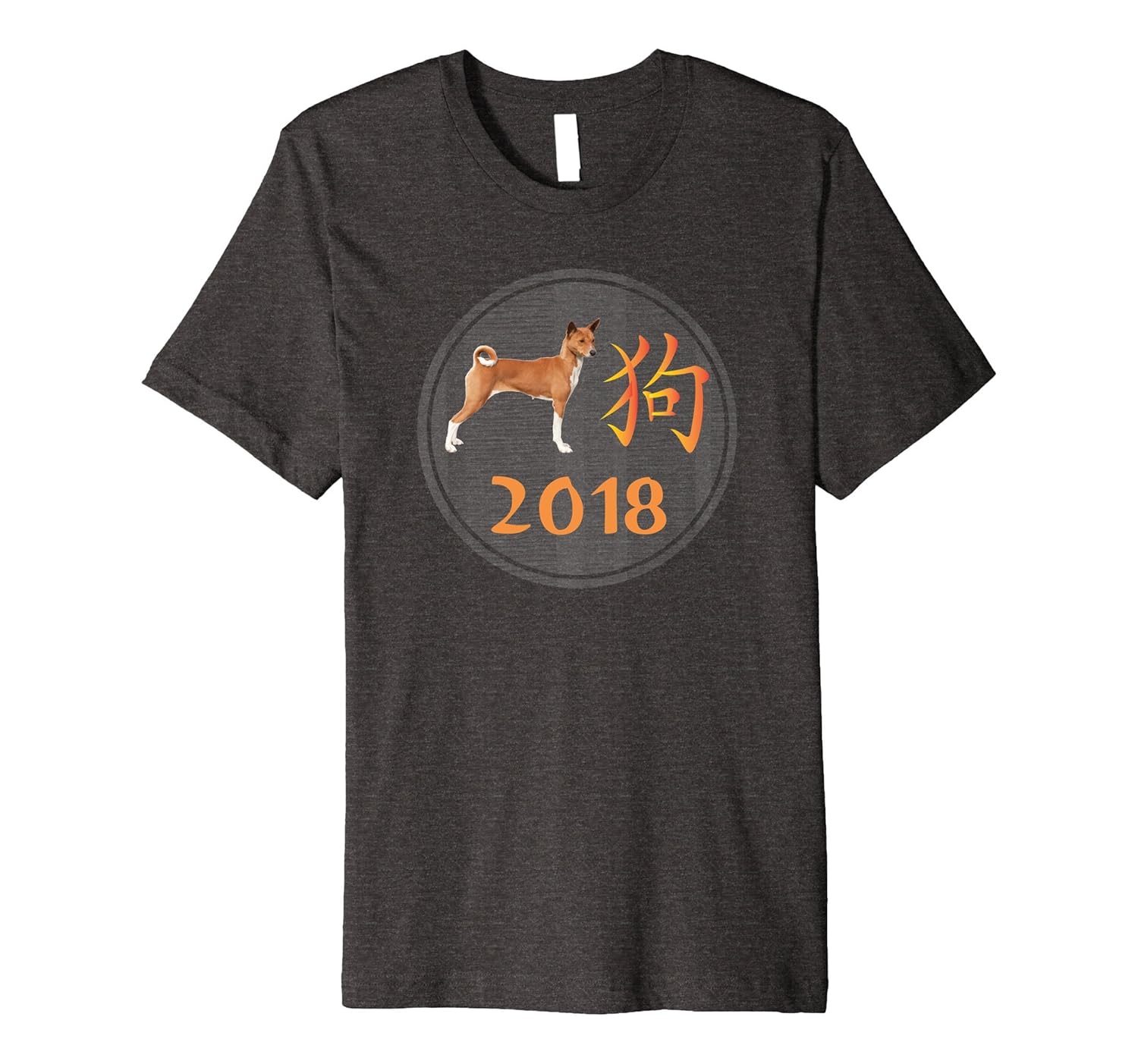 Solid colors: 100% Cotton; Heather Grey: 90% Cotton, 10% Polyester; All Other Heathers: 58% Cotton, 42% Polyester; Imported; Machine wash cold with like colors, dry low heat; Happy New Year! Celebrate 2018 with this Chinese Year of the Dog Shirt. This is the year of the earth dog in the chinese zodiac astrology calendar.; Fit: Slim (consider ordering a larger size for a looser fit); This Year of the Dog 2018 Basenji Tshirt is designed and printed to be fitted. For a more loose fit, please order a size up. Great gift for new years dog lovers and dog moms and dads.; This premium t-shirt is made of lightweight fine jersey fabric