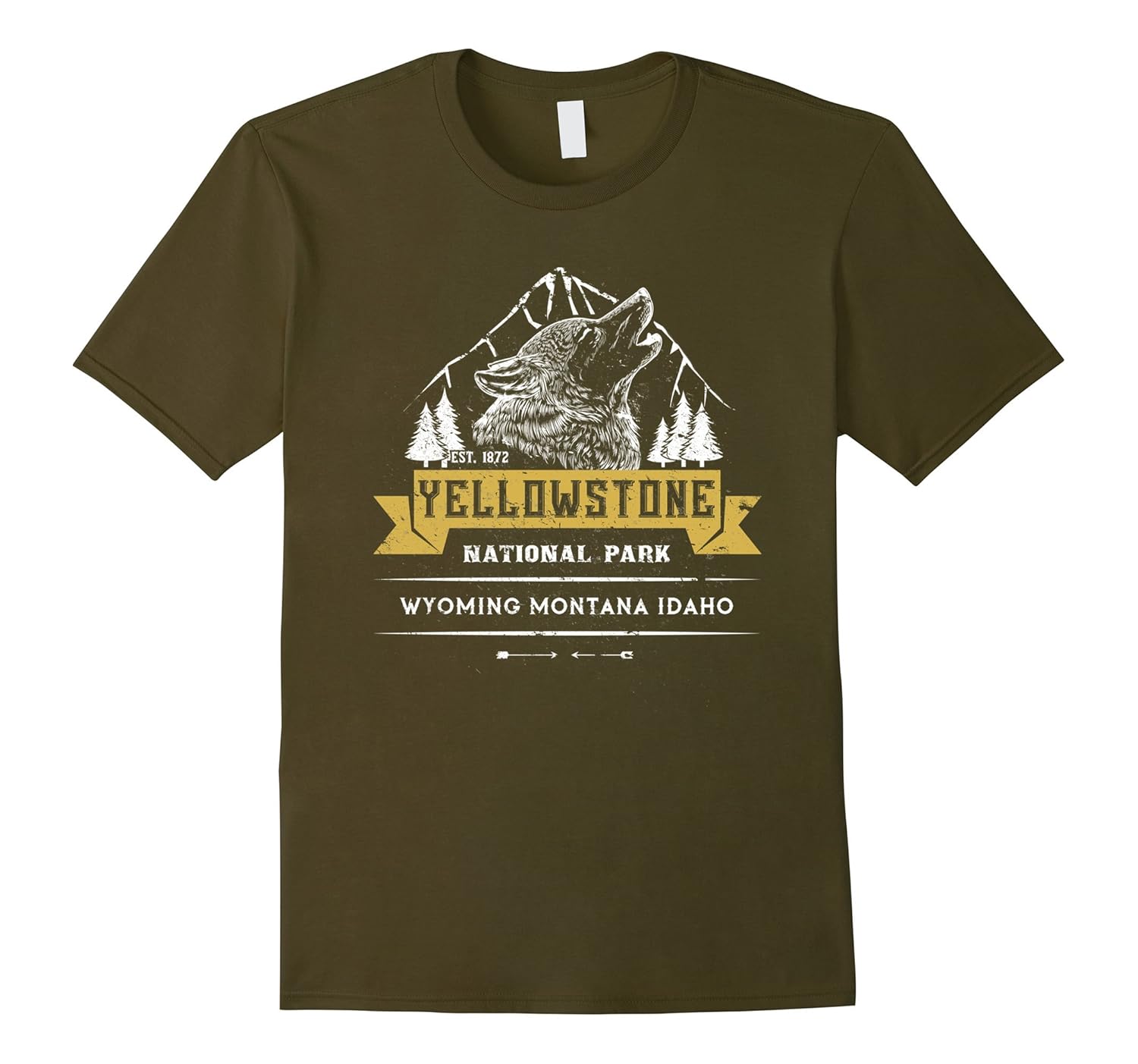 Yellowstone National Park T shirt Camp Hike Climb Wolf-ANZ
