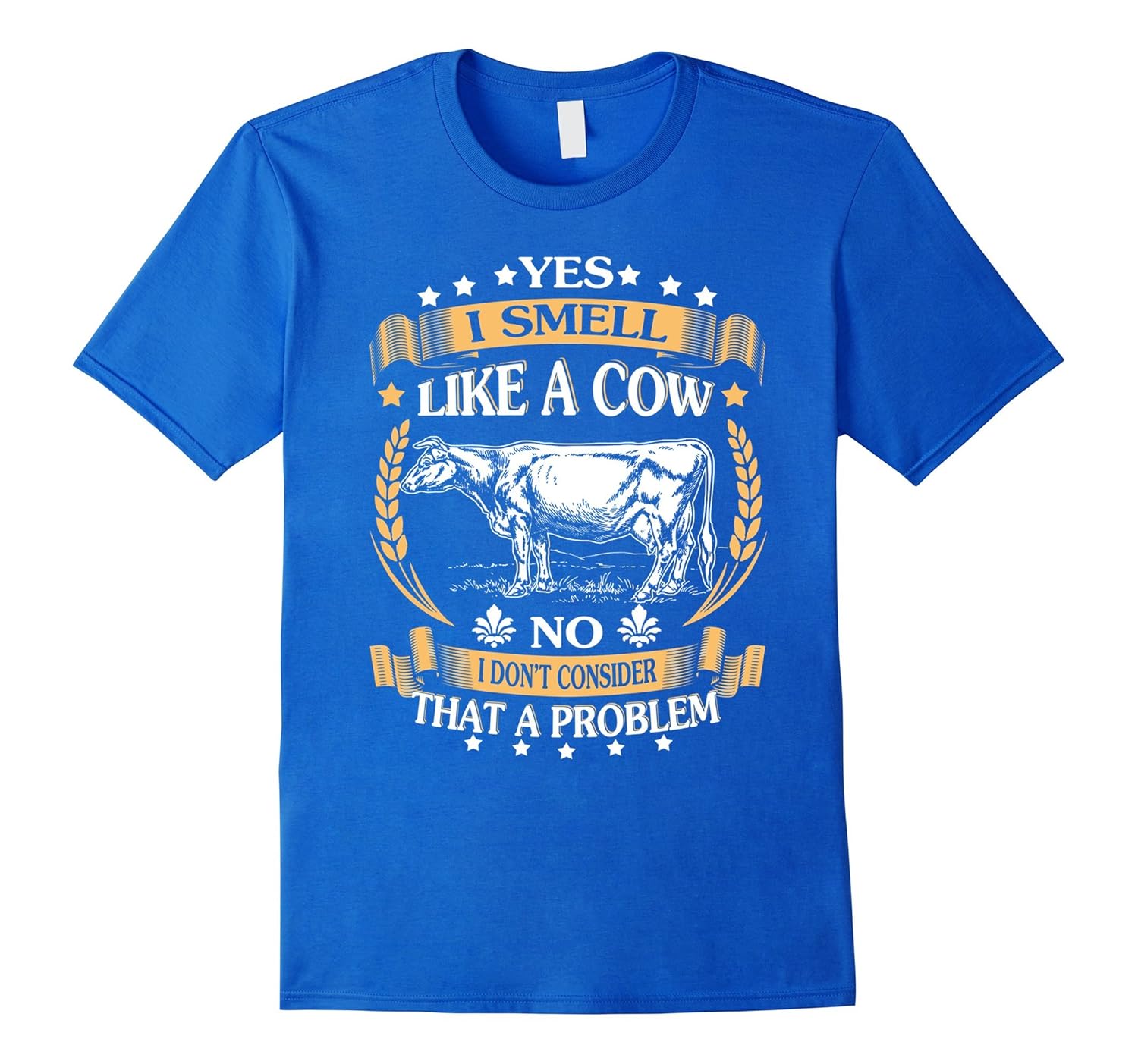 Solid colors: 100% Cotton; Heather Grey: 90% Cotton, 10% Polyester; All Other Heathers: 65% Cotton, 35% Polyester, Imported, Machine wash cold with like colors, dry low heat, Yes I Smell Like A Cow, No I Don”t Consider That A Problem, Lightweight, Classic fit, Double-needle sleeve and bottom hem