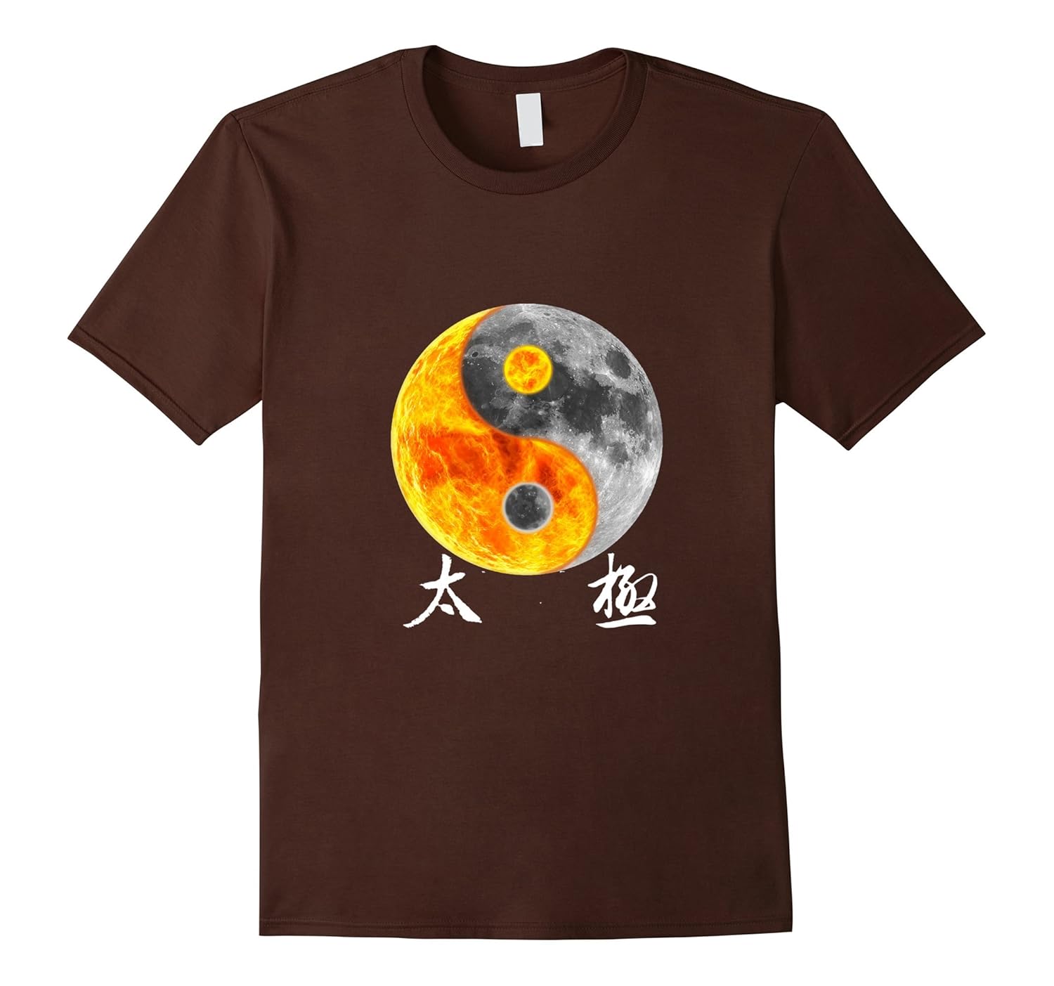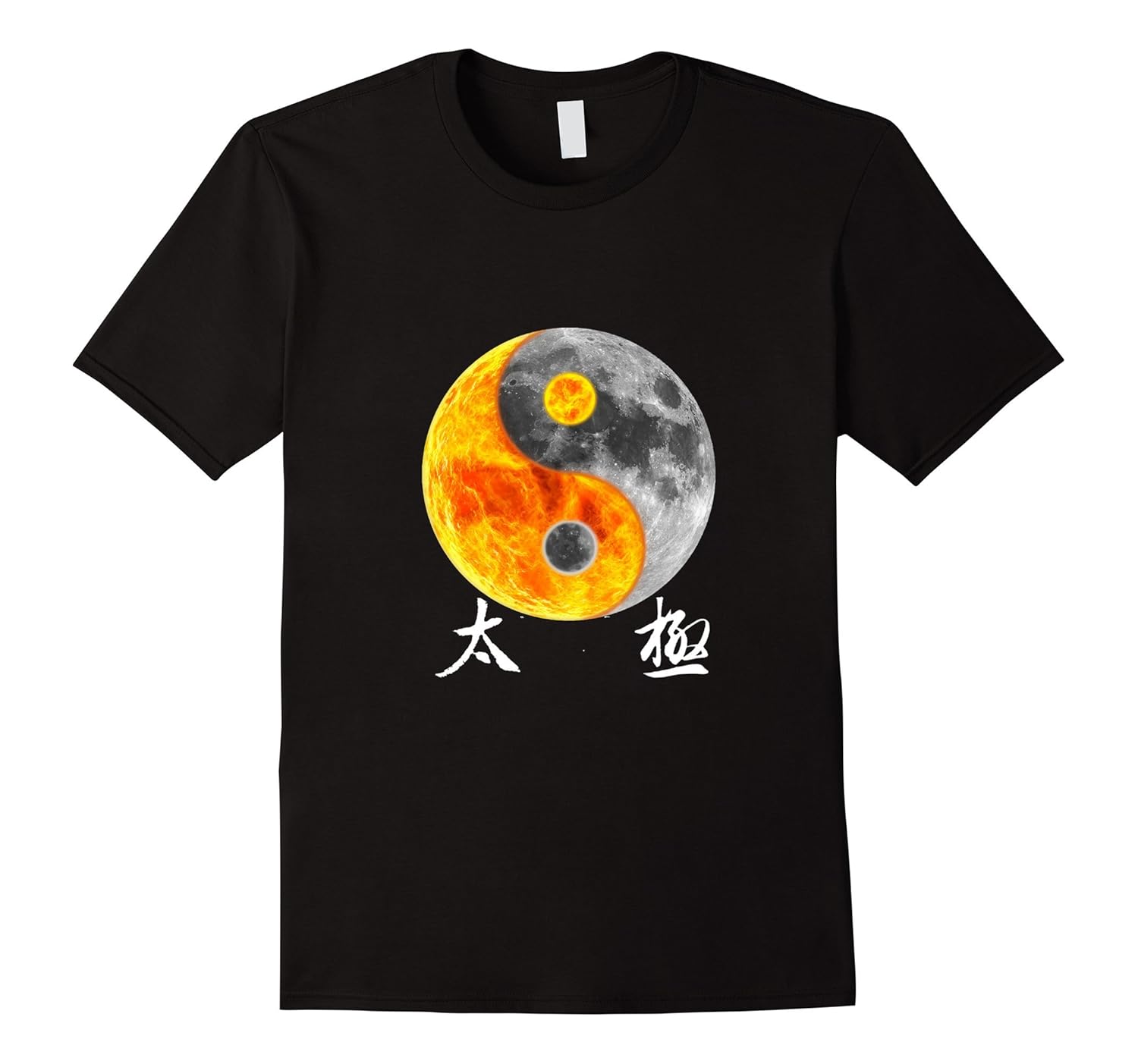 Solid colors: 100% Cotton; Heather Grey: 90% Cotton, 10% Polyester; All Other Heathers: 65% Cotton, 35% Polyester; Imported; Machine wash cold with like colors, dry low heat; Ying Yang Tai Chi t shirt gift for Chinese Martial Arts masters, Feng Shui Bagua fans, Zen Taoism Club. Yin Water Moon and Yang Fire Flaming Sun form Tai Chi – traditional Chinese characters calligraphy. May the Chi be with you. Relaxed fit tshirt.; Cool Kung Fu apparel with Ying Yang Tai Chi symbol Ba Gua of the Sun and Moon. Zoom in to see the fine details in this Feng Shui master tee shirt. Put Yin Yang balance tee shirt on and achieve balance in life.; Lightweight, Classic fit, Double-needle sleeve and bottom hem