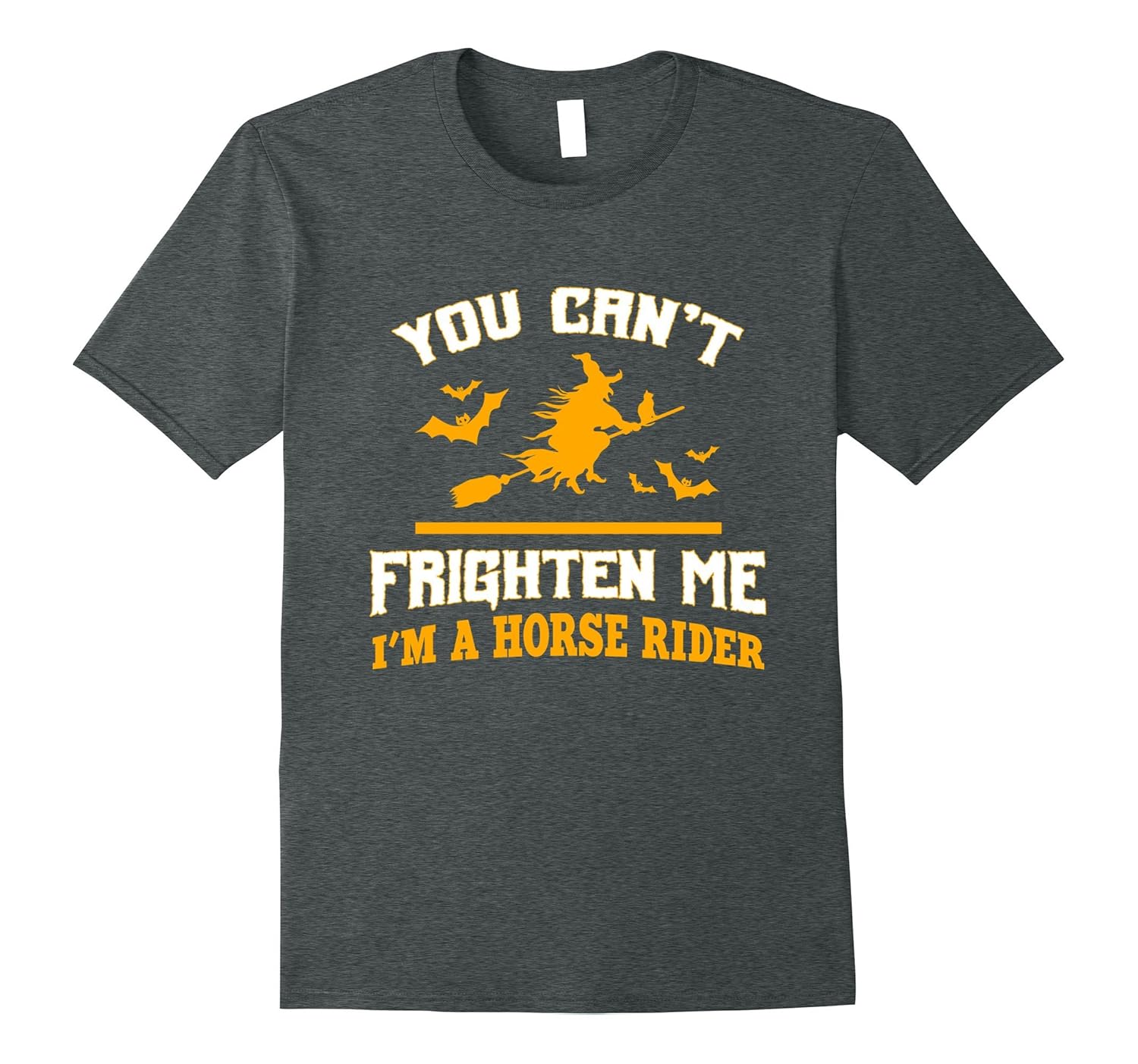 Solid colors: 100% Cotton; Heather Grey: 90% Cotton, 10% Polyester; All Other Heathers: 65% Cotton, 35% Polyester; Imported; Machine wash cold with like colors, dry low heat; You cant frighten me Im a horse rider halloween funny t-shirt. The perfect Halloween Black Bats Cat Pumpkin costume idea spooky party tee gift for you! The best fun scary JACK O LANTERN zombie witch broomstick fall fancy dress costume shirt!; Look great with this stylish funny gift shirt! Great for birthdays christmas Andamp; HALLOWEEN. A cute gift tee shirt for your dad brother grandpa husband boyfriend uncle son papa uncle Andamp; nephew or girlfriend sister mama mom mother grandma wife nana Andamp; daughter.; Lightweight, Classic fit, Double-needle sleeve and bottom hem