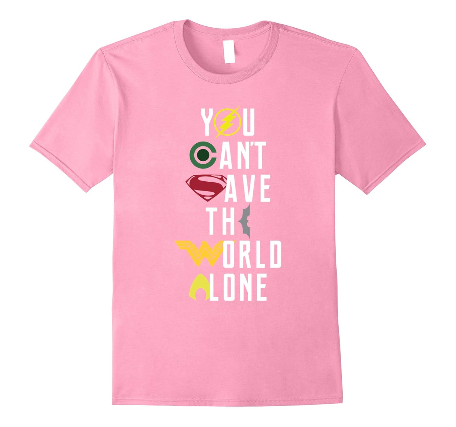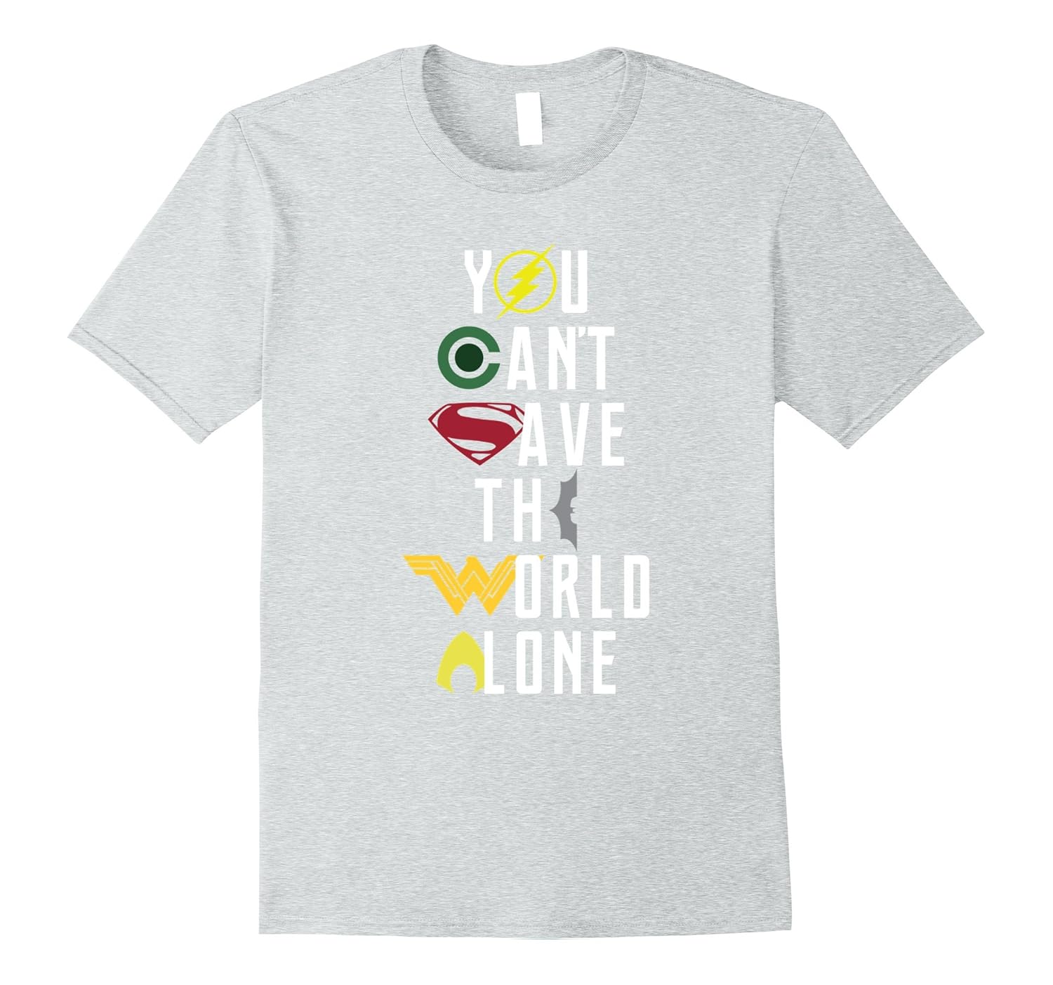Solid colors: 100% Cotton; Heather Grey: 90% Cotton, 10% Polyester; All Other Heathers: 65% Cotton, 35% Polyester, Imported, Machine wash cold with like colors, dry low heat, bat, wonder, spider, super, woman, man, SUPERHERO CAN”T SAVE THE WORLD ALONE – T-SHIRT – LOGO COLOR, Lightweight, Classic fit, Double-needle sleeve and bottom hem