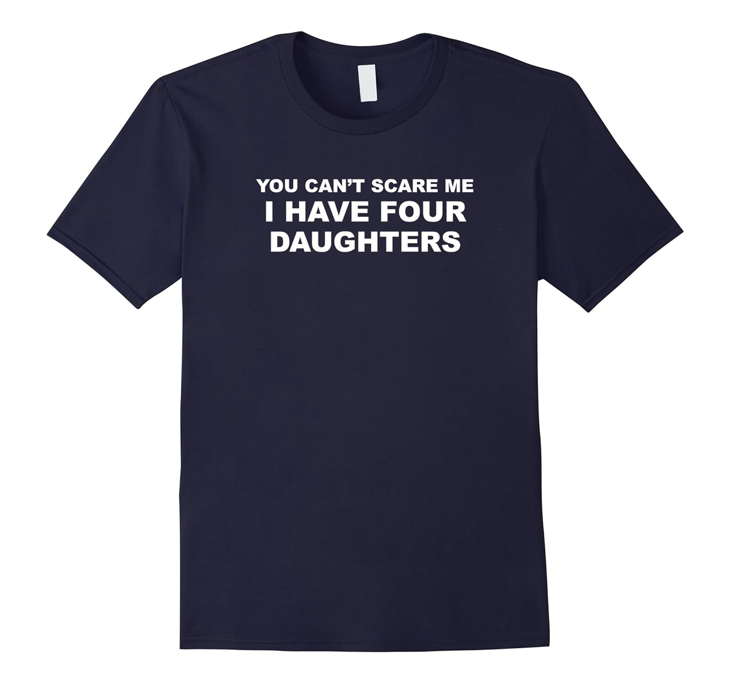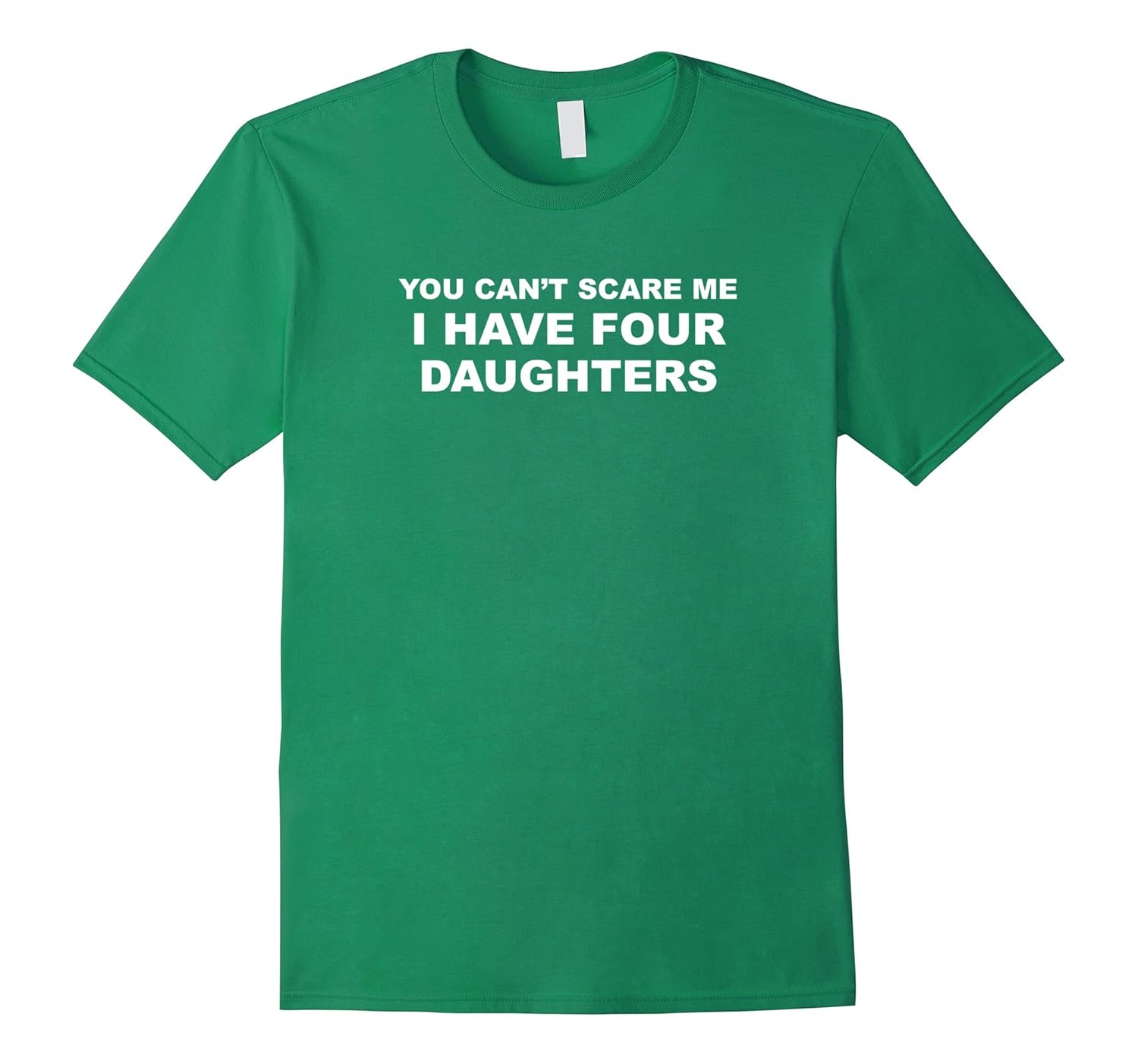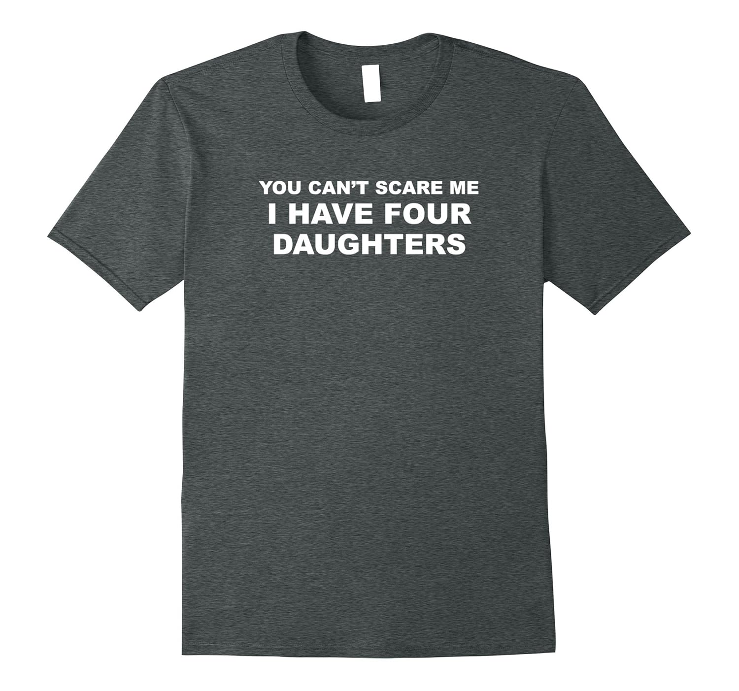 Solid colors: 100% Cotton; Heather Grey: 90% Cotton, 10% Polyester; All Other Heathers: 50% Cotton, 50% Polyester; Imported; Machine wash cold with like colors, dry low heat; Are you a father? Or looking for a gift for dad or your husband? Get him this funny You Cant Scare Me I Have 4 Daughters T-Shirt!; This You Cant Scare Me I Have 4 Daughters T-Shirt is printed to be fitted. For a looser fit, please order a size up. Add this to your cart today!; Lightweight, Classic fit, Double-needle sleeve and bottom hem