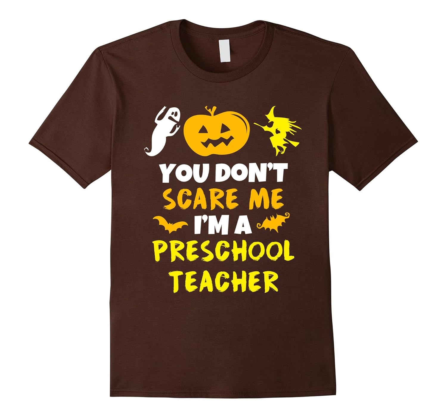 Solid colors: 100% Cotton; Heather Grey: 90% Cotton, 10% Polyester; All Other Heathers: 65% Cotton, 35% Polyester; Imported; Machine wash cold with like colors, dry low heat; you dont scare me im a preschool teacher school education educator halloween party happy scary witch pumpkin ghost ghoul horror. cant wait to wear this!; quote textual saying cool gift ideas joke funny humor sarcastic; Lightweight, Classic fit, Double-needle sleeve and bottom hem