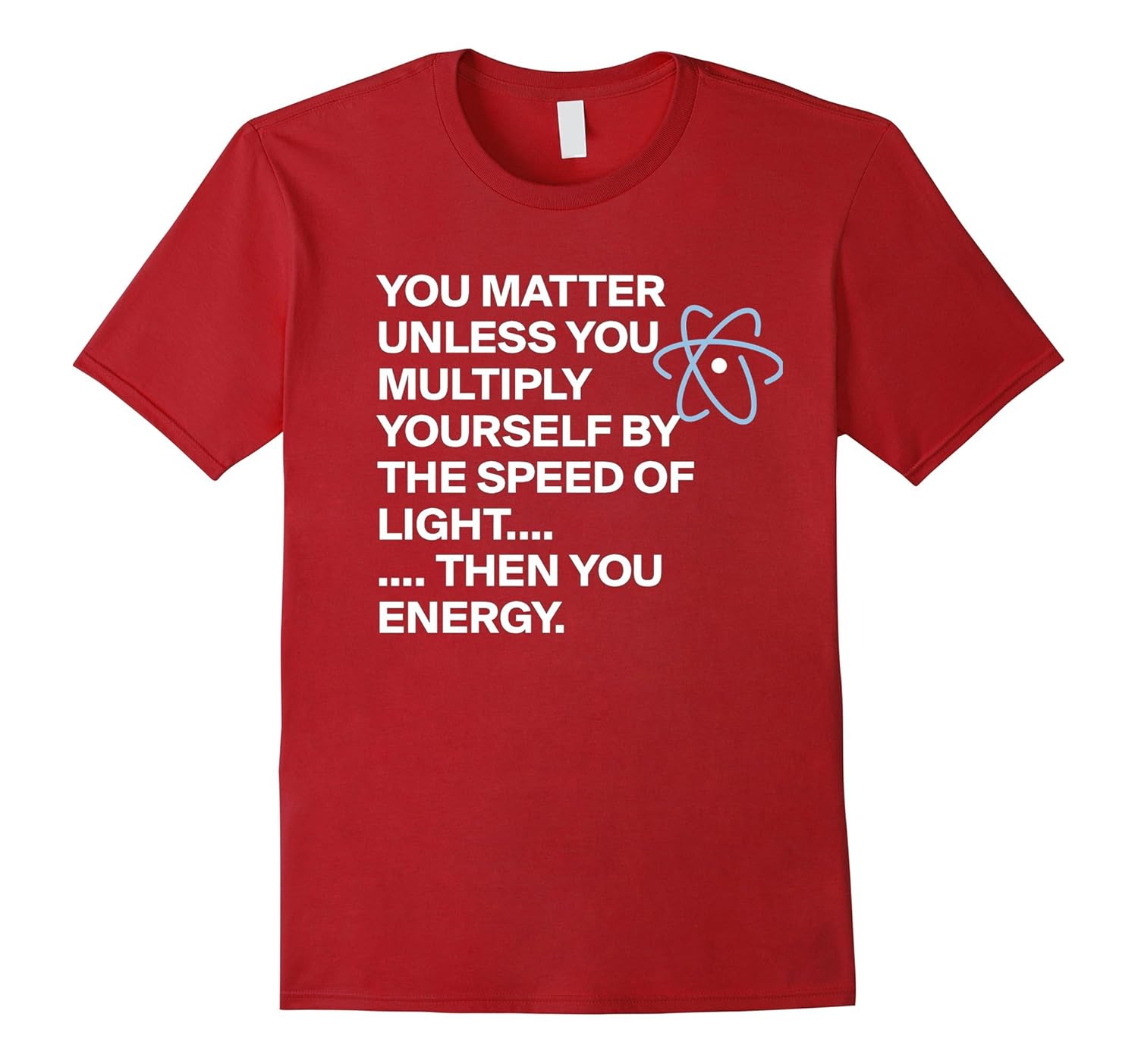 Solid colors: 100% Cotton; Heather Grey: 90% Cotton, 10% Polyester; All Other Heathers: 65% Cotton, 35% Polyester, Imported, Machine wash cold with like colors, dry low heat, You Matter You Energy T-Shirt, You matter unless you multiply, Physics T-Shirt, physics science shirt, physics teacher shirt, physics women shirt, physics man shirt, Are you a Science teacher, into Physics Then this t-shirt is for you, Physics shirt. Lightweight, Classic fit, Double-needle sleeve and bottom hem