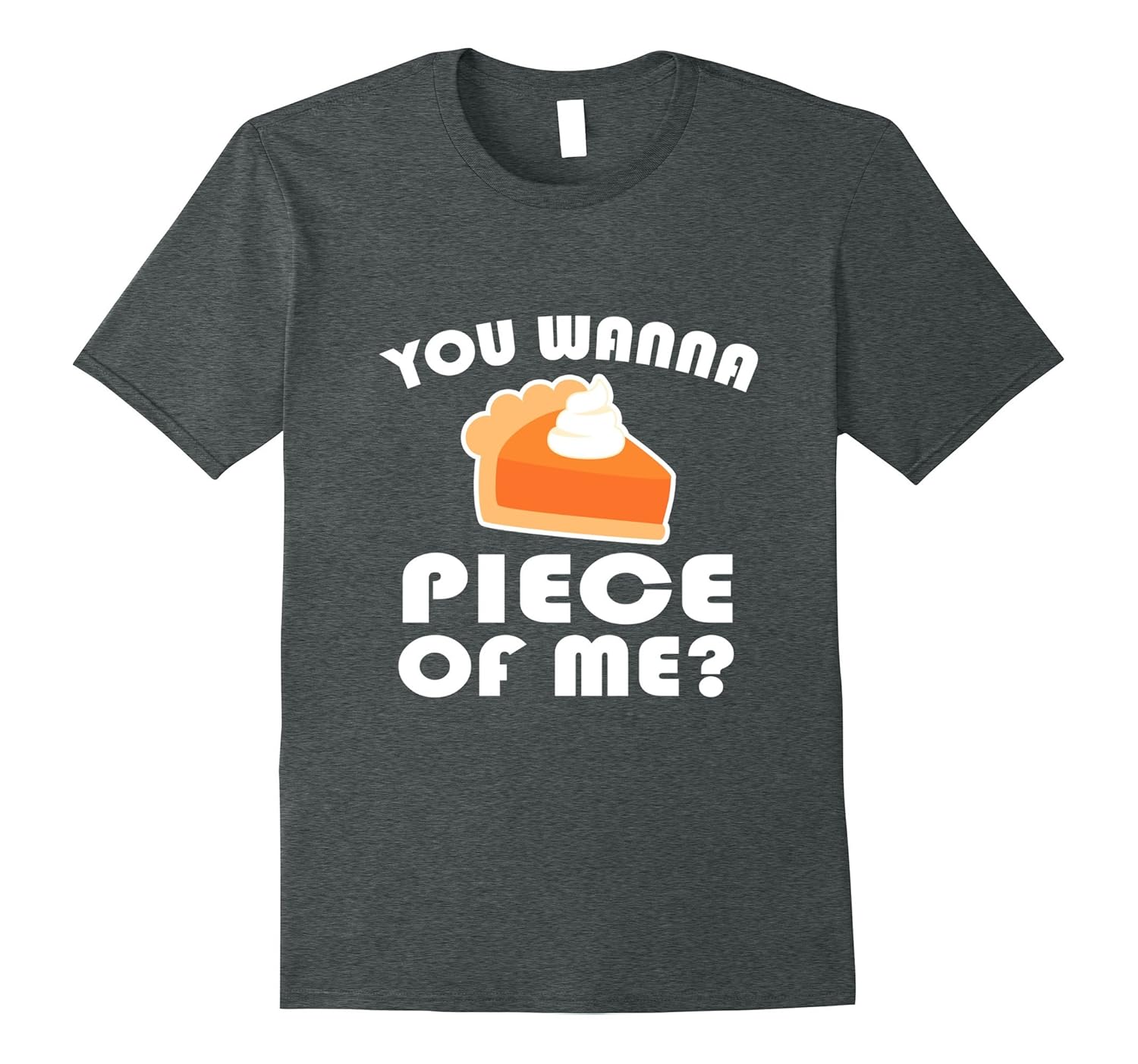 Solid colors: 100% Cotton; Heather Grey: 90% Cotton, 10% Polyester; All Other Heathers: 65% Cotton, 35% Polyester; Imported; Machine wash cold with like colors, dry low heat; You wanna piece of me? The question thats on everyones minds on Thanksgiving Day.; Whether you want a slice or the whole pumpkin pie, this funny thanksgiving t-shirt is definitely for you.; Lightweight, Classic fit, Double-needle sleeve and bottom hem