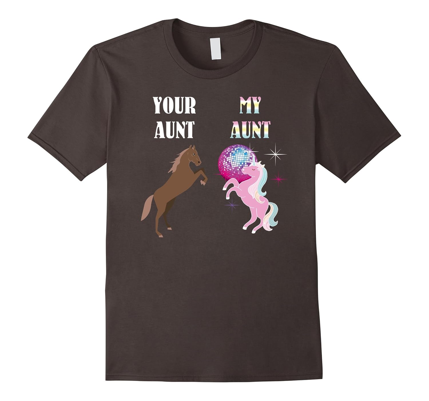 Solid colors: 100% Cotton; Heather Grey: 90% Cotton, 10% Polyester; All Other Heathers: 65% Cotton, 35% Polyester, Imported, Machine wash cold with like colors, dry low heat, Your Aunt My Aunt Unicorn T-Shirt is a very nice present for unicorns lovers niece and nephew who love their aunt and will be happy to wear such a fun tee shirt that features his or her auntie as a wonderful unicorn dancing on the party. One of the best humor gifts for niece form aunt and for nephew from aunt as a Christmas present of for birthday and Thanksgiving also as a cute joke gift for aunt if you will wear it for her to make her laugh every time she sees you in it. Lightweight, Classic fit, Double-needle sleeve and bottom hem